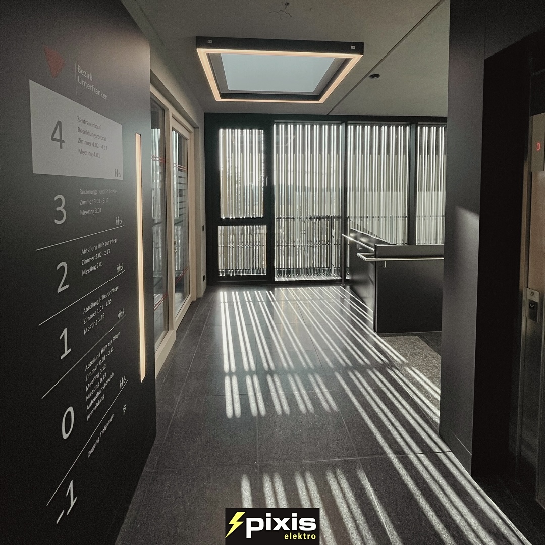 Für den Neubau eines modernen Verwaltungsgebäudes des Bezirks Unterfranken wurde eine ganzheitliche elektrotechnische Infrastruktur umgesetzt, die sowohl die Energieversorgung als auch die digitale Vernetzung optimal unterstützt.